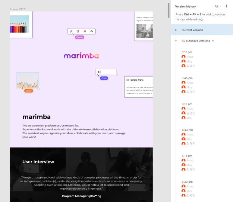그래서 우리팀은 마림바를 시작할 때 실시간 협업이 가능한 피그마를 선택했다.